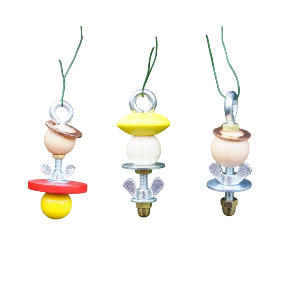 - The pictures show colourful angels. All (or at least most) are made entirely from standard Ikego parts. This is just one case where the tolerance rule really plays a role. The washers/disks are made of various metals and sometimes wood. The beads have all sorts of interesting shapes, but all within the +/-15mm range.