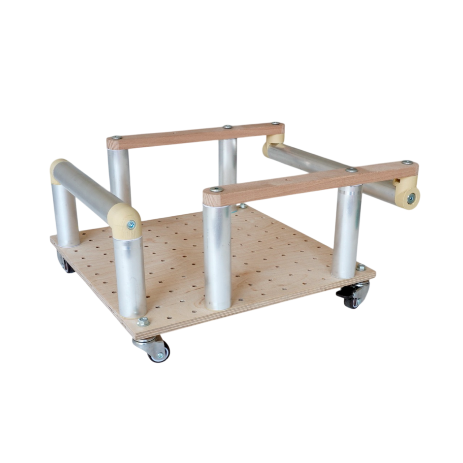 ‘Rollade’ is a small moveable platform that can be used for plants or as a bottom drawer for shelves.