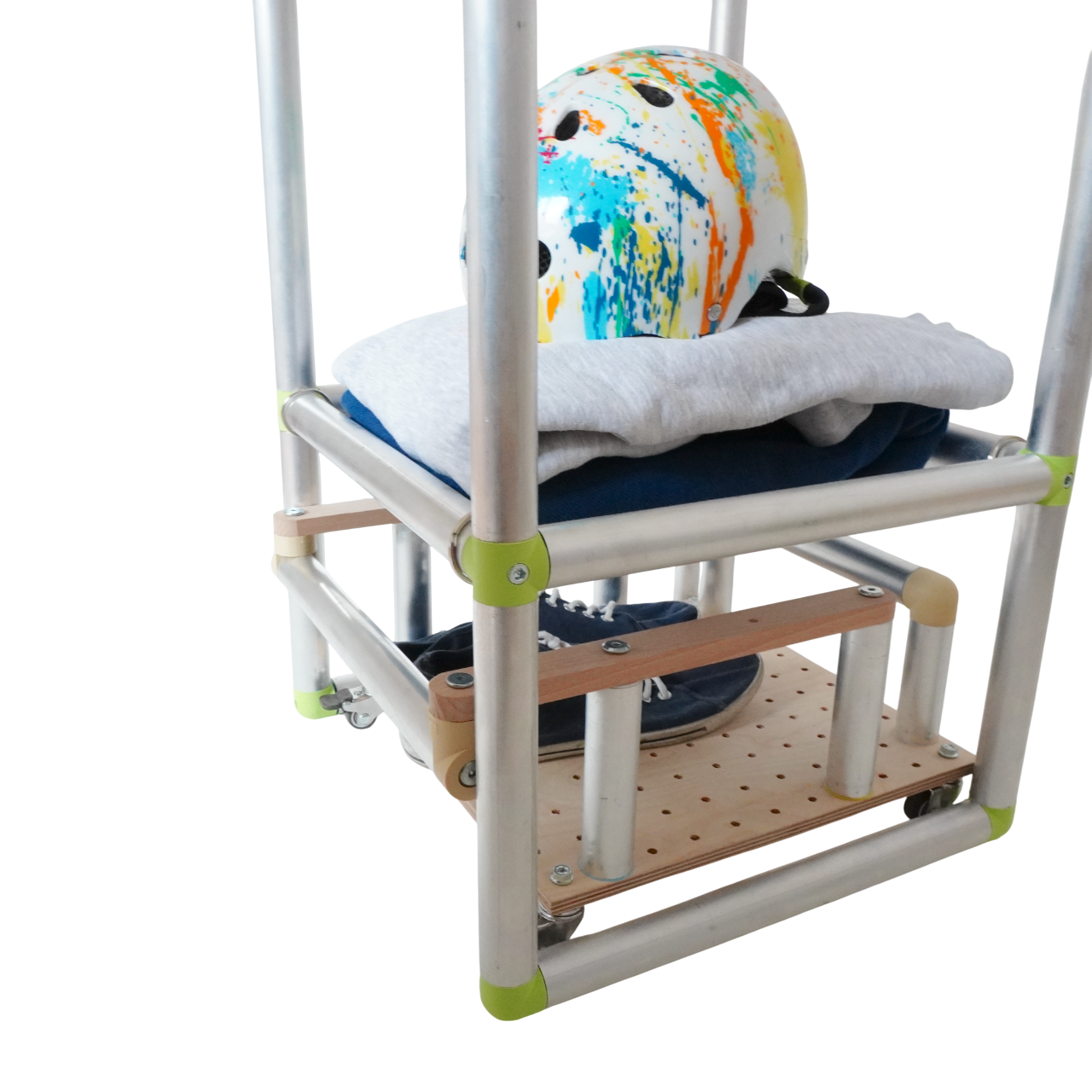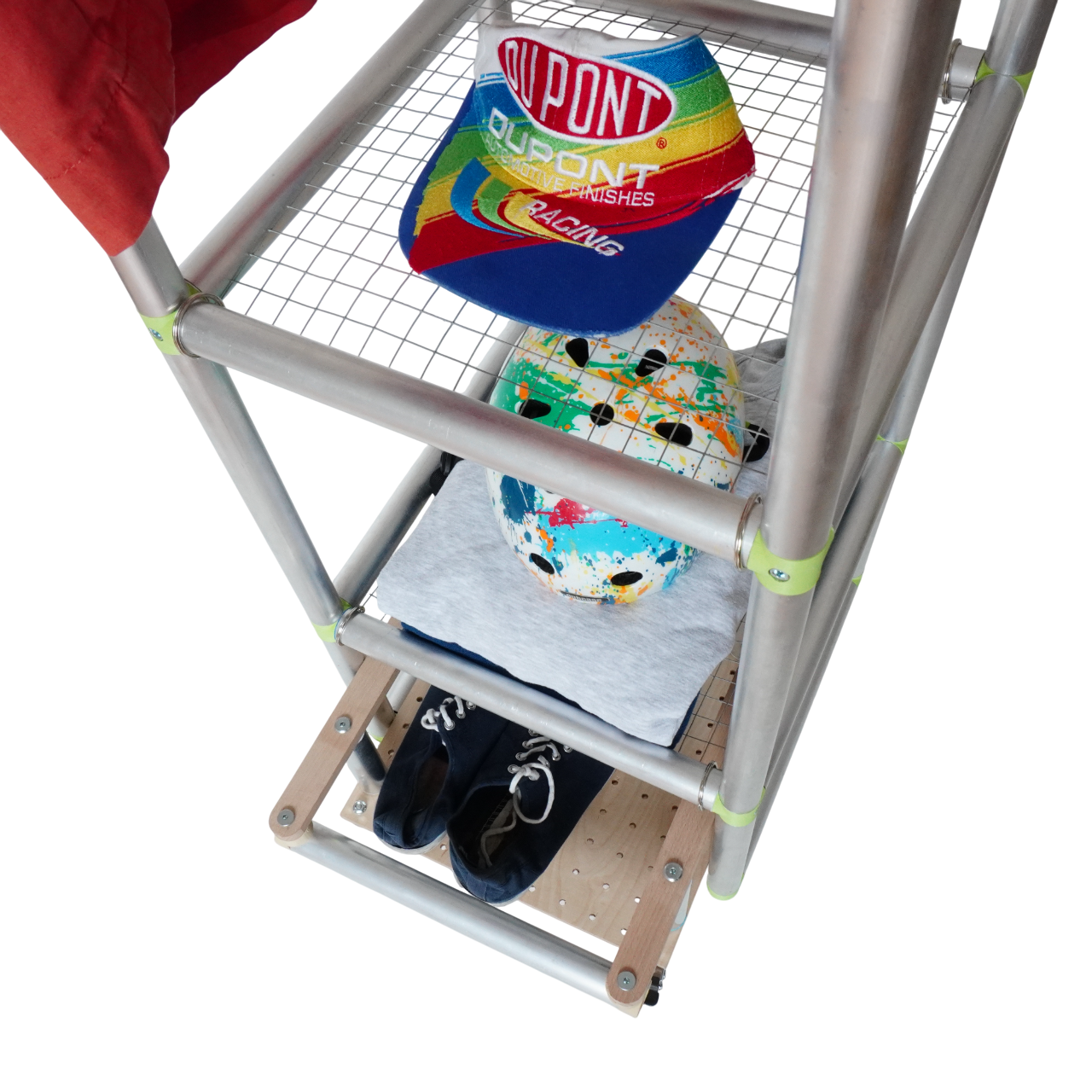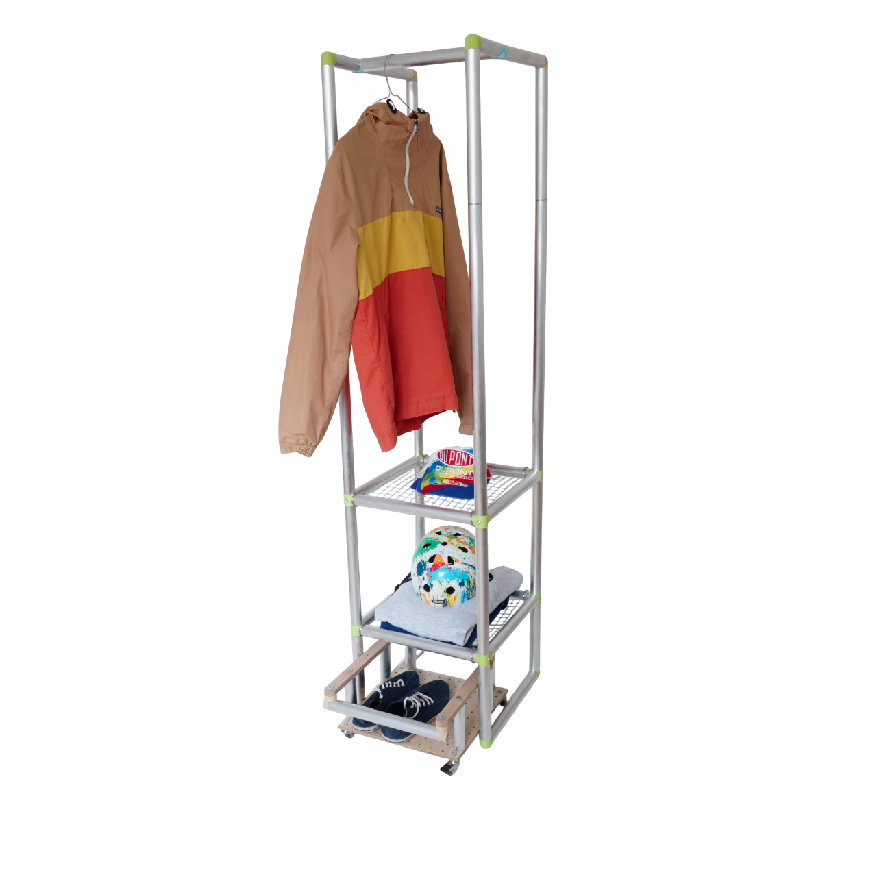 ‘Upstart‘ is a shelf designed for use as a wardrobe.